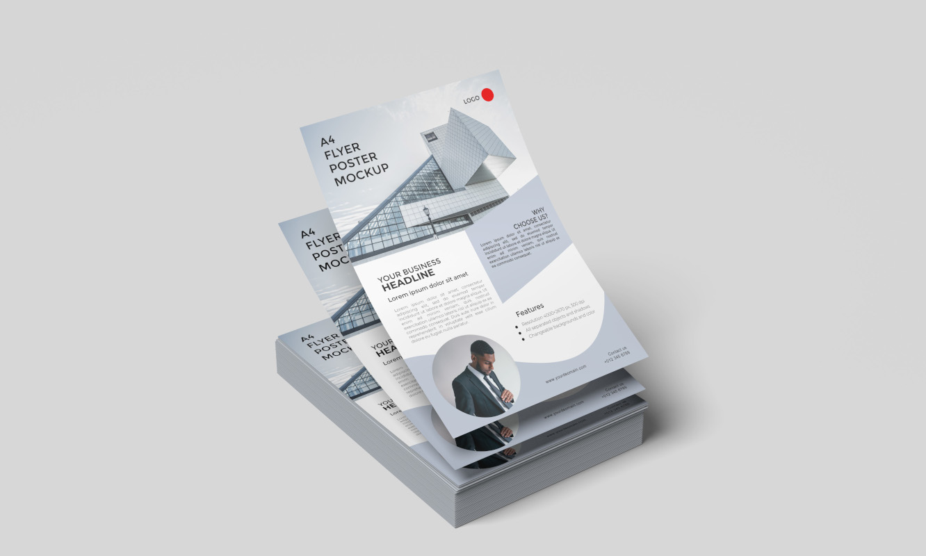 Για τον σχεδιασμό και την εκτύπωση 1.000 flyer Α4, διπλής όψης τετράχρωμο , σε 100gr Matt 250,00€/net
